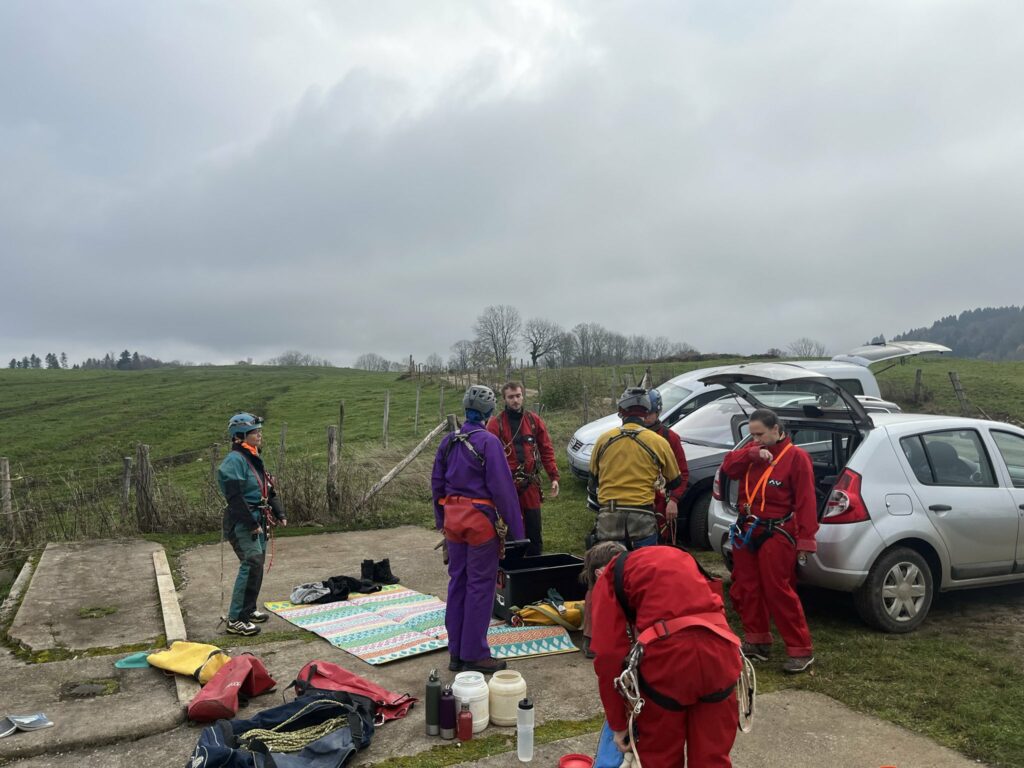 Jean-Marc présenta Lise, nouvelle arrivante récemment fédérée au SCV, venue découvrir concrètement ce qu’est l’EDS en vue d’une éventuelle inscription. Cette sortie marquait également une étape importante pour Mathilde et Aloïs, qui allaient réaliser leur toute première exploration souterraine.